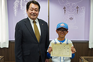 オールジャパンベースボールリーグ小等部全国新人大会に出場する倉田禮央さんが市役所を訪れました