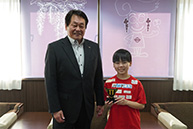 第3回トランプウォール・トライブ・コンペティション2026フリースタイルフロージュニアの部で優勝したとーのさんが市役所を訪れました