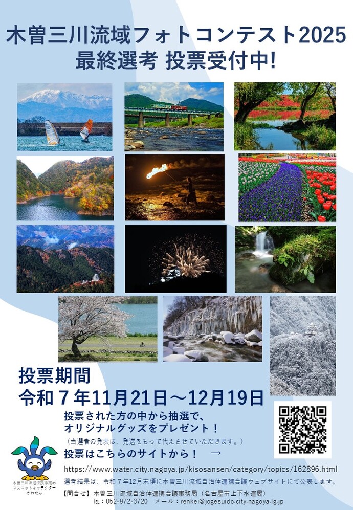 江南市が参加する木曽三川流域自治体連携会議が実施する「木曽三川流域フォトコンテスト2025」の最終選考投票が行われています。