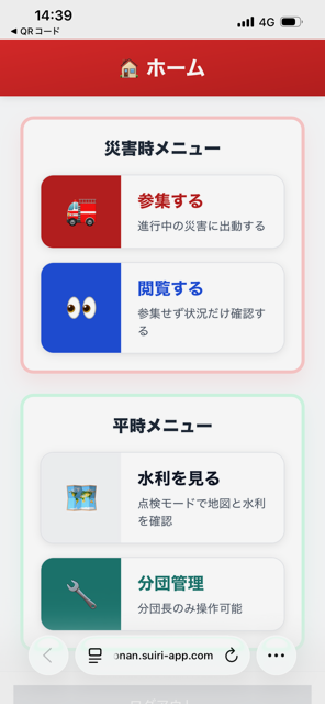 地域の消防団活動をサポートするための「消防団水利アプリ」の導入が完了しました。このアプリは、水利(防火水槽、消火栓、プールなど)情報や災害時の迅速な情報共有を目的としています。