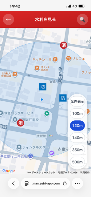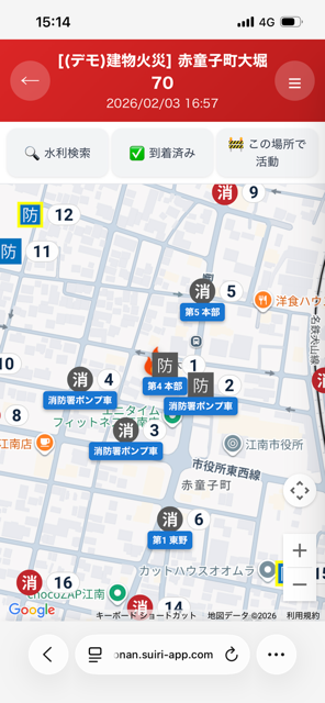 地域内の水利の位置情報や使用状況、目的地までの最短ルートが確認でき、災害発生時にリアルタイムで受け取る通知機能を通じて、迅速に対応を行うことができます。